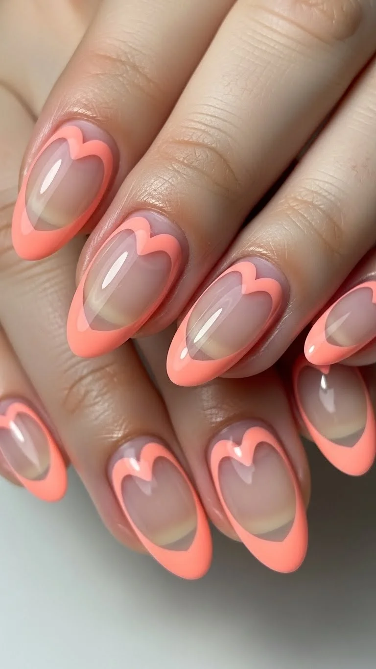 This design uses the natural shape of the nail tip. Paint two rounded mounds at the top of your nail. This makes the entire tip look like a heart. Use a bright pink or coral for a modern feel. It works best on oval or almond nail shapes. You only need one color for this. It is a quick way to get festive.