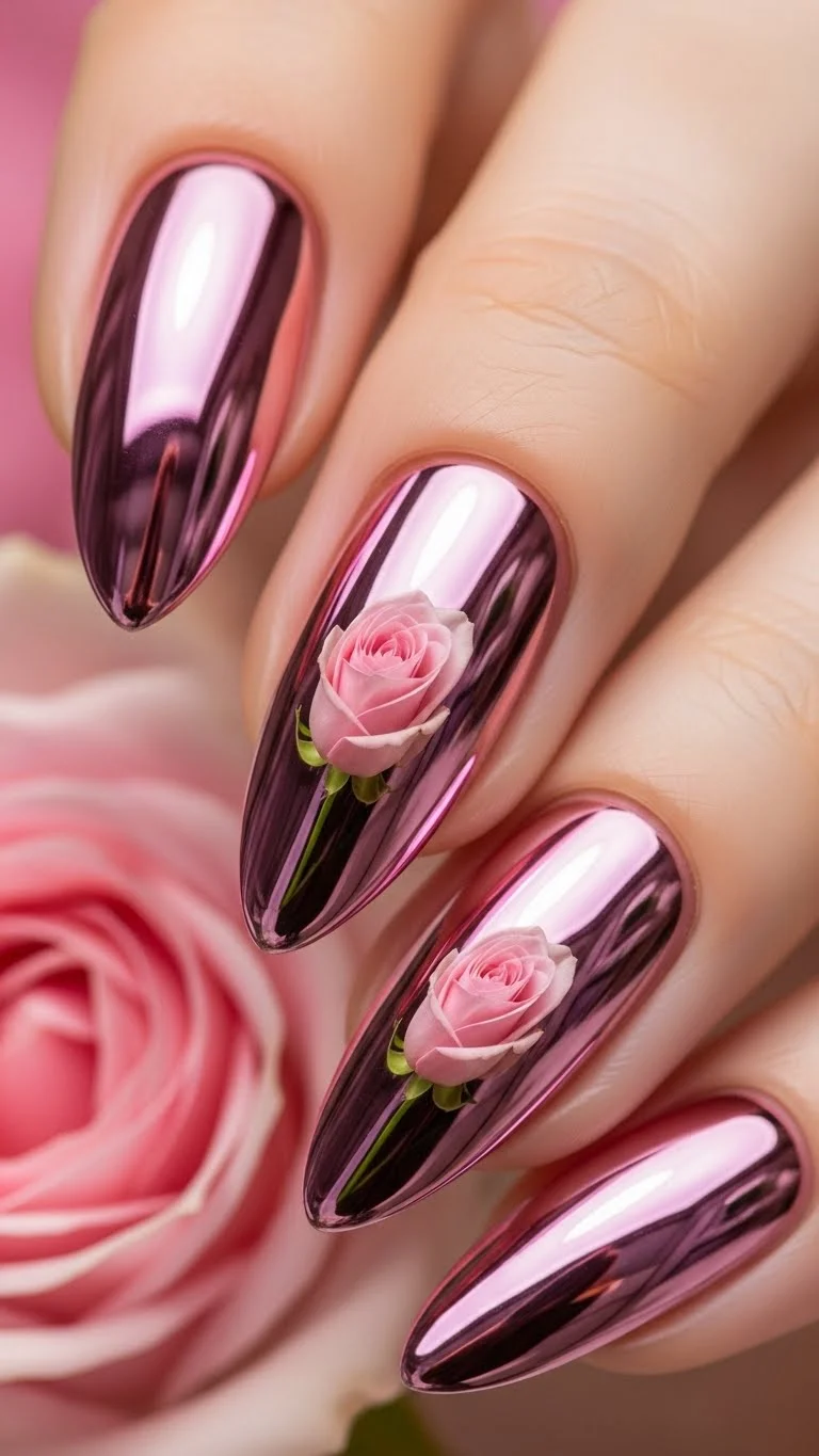 Chrome nails have a futuristic shine. You can achieve this with chrome powder. Rub the powder over a dry gel polish or a specific “tacky” base. A little bit of powder goes a long way. It creates a smooth, mirror-like surface. Use a soft pink for a romantic but bold statement.