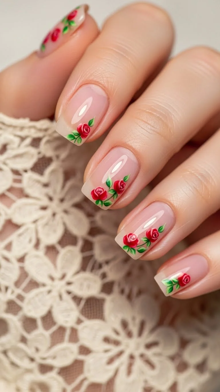 Red tips offer a timeless look with a romantic twist. Instead of the usual white, use a bold crimson. This style works on any nail length. It makes short nails look longer. For a DIY version, use reinforcement stickers from the office supply aisle. Place them on your nail to create a guide for the paint. This keeps the lines sharp. You only need one bottle of red polish and a clear top coat. It is much cheaper than a full salon set.