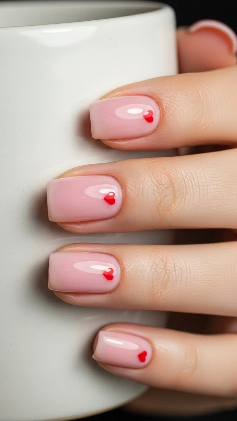 Small hearts are subtle and sweet. You can place a single heart on each nail or just one finger. Use a toothpick or the end of a bobby pin to dot the shape. Dip the tip into red polish. Make two small dots side by side. Drag them down to a point. This creates a perfect heart in seconds. It looks great on a bare or sheer base. This saves time because you won’t worry about chipped colors.