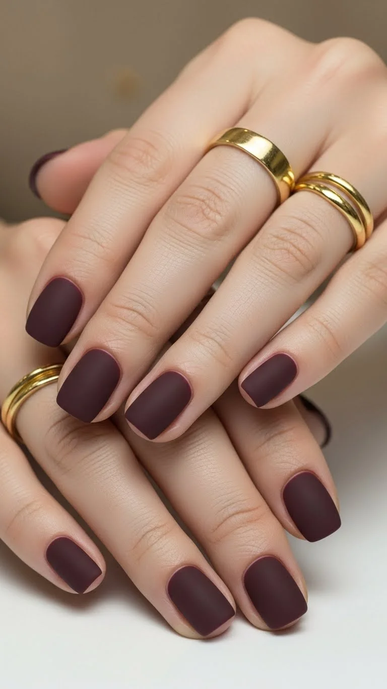 Matte nails look modern and edgy. You don’t need to buy a specific matte color. Just buy a matte top coat. Apply it over any glossy berry or wine-colored polish. It changes the look instantly. Darker tones like plum or cranberry are perfect for winter. This finish hides small bumps on the nail surface better than shiny polish.