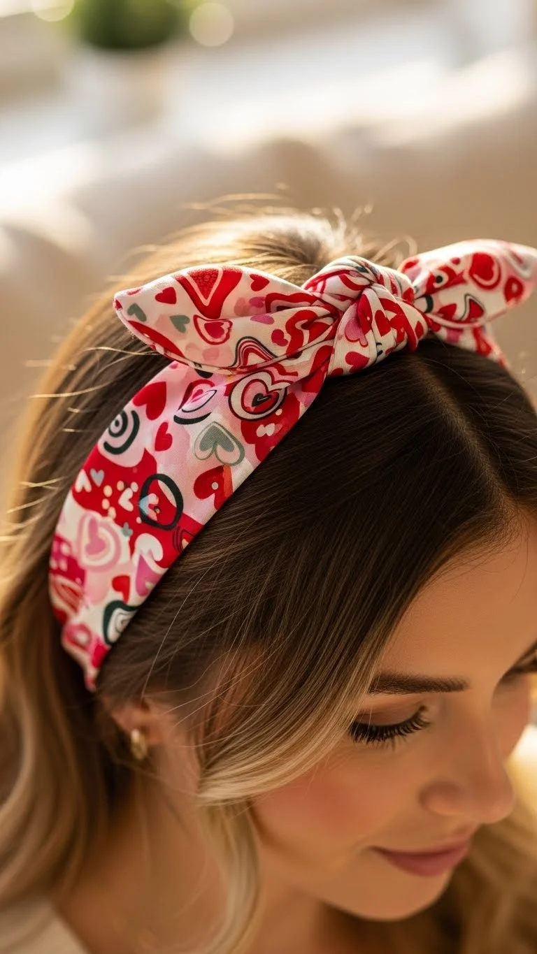Adding a scarf as a headband is an easy way to elevate any hairstyle. It introduces color, pattern, and a touch of vintage charm. You can use a silk scarf for an elegant look or a cotton scarf for a more casual vibe. Fold the scarf lengthwise into a strip. Place it over your head, just behind your hairline, and tie it at the nape of your neck or at the top for a bow. You can wear your hair down, in a ponytail, or even in a bun with the scarf. This simple accessory can completely change your look. It’s a budget-friendly way to add personality and flair to your Valentine’s style.