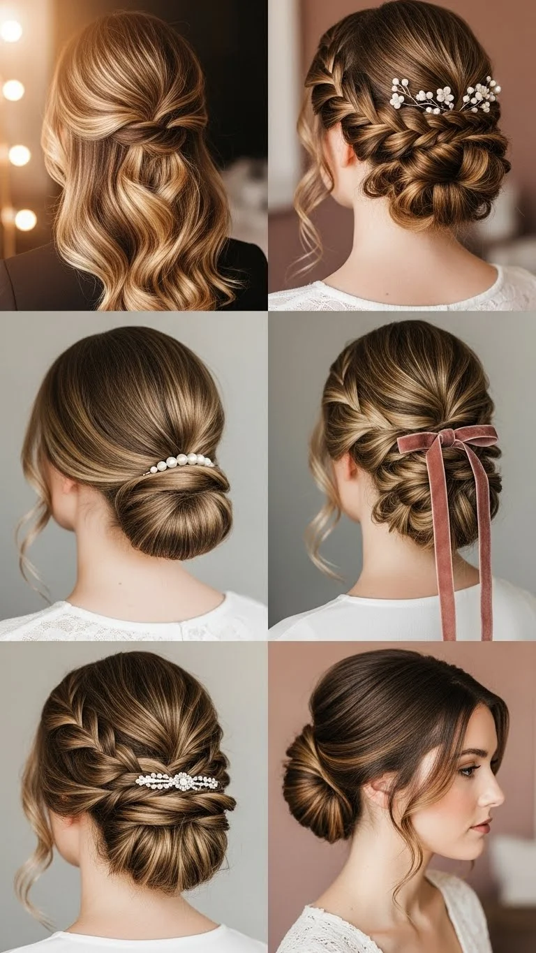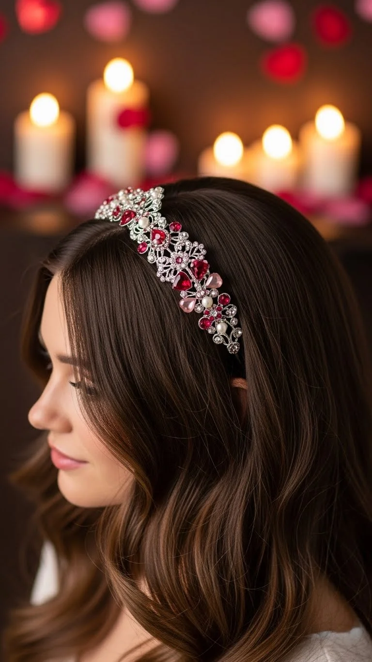 An elegant headband can instantly make loose hair feel more special and put-together. This is ideal if you want a minimal effort style with maximum impact. Choose a headband that has some sparkle, pearls, or a velvet texture for a luxurious feel. Place it on your head, just behind your hairline, letting your hair flow naturally. You can wear your hair straight, wavy, or curly. The headband acts as the focal point, adding a touch of glamour without needing any complex styling. It’s perfect for quickly dressing up your look for a romantic occasion.