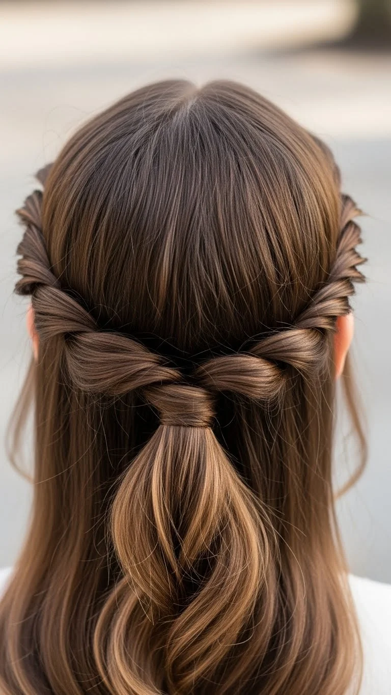A twisted half-up ponytail is a quick and pretty way to style your hair. It combines the ease of a ponytail with a touch of visual interest. Start by parting your hair as usual. Take a section of hair from one side, above your ear, and twist it backward. Repeat on the other side. Bring both twisted sections to the back of your head and gather them into a small ponytail. Secure with a clear elastic. You can gently tug at the twists to make them appear fuller. The rest of your hair can be left straight or curled for added texture. This simple style is great for both day and evening plans.